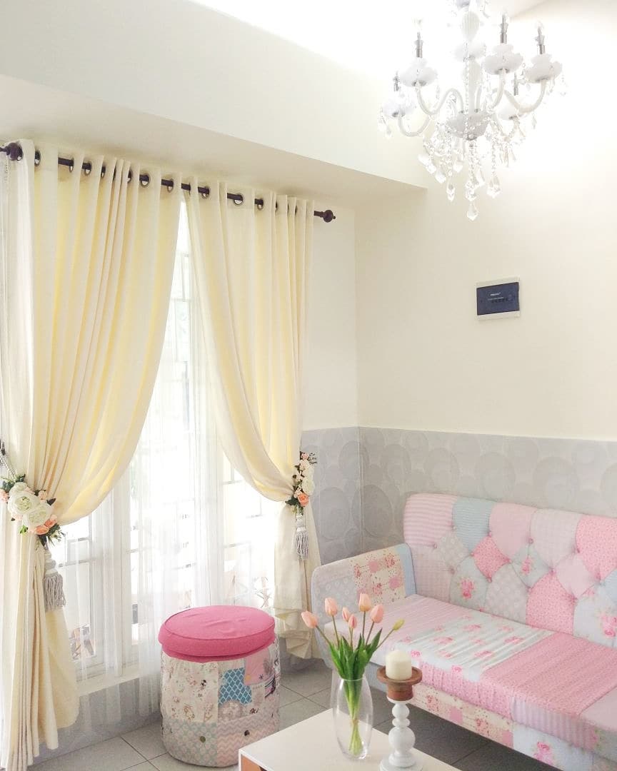 Trik untuk membuat ruang tamu yang minimalis jadi terlihat lebih lega adalah menggantung gorden dengan posisi tinggi.